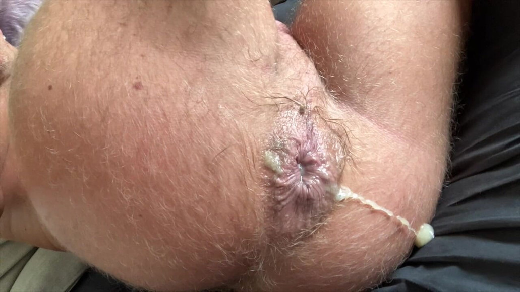 Pushing cum out of my wrecked and used hole. Fuckers enjoyed my mancunt bareback and ejaculated in me without hesitation!