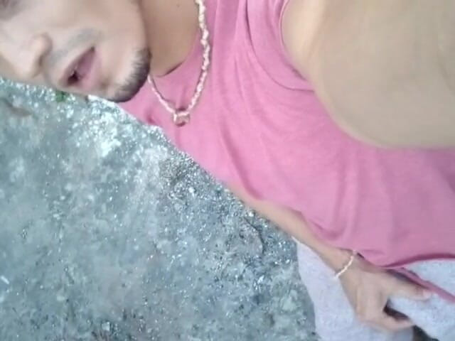 Škádlení sebe přes kalhoty venku