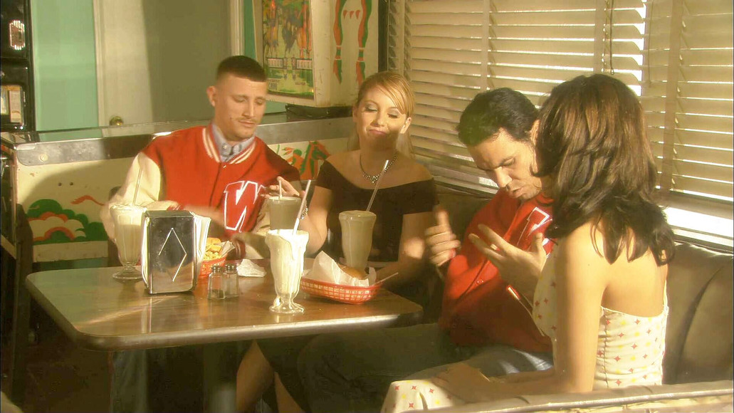 Slutty babe takes what she wants from this nerd. They start fucking in a vintage diner and she gets a huge exploding facial all over her face.