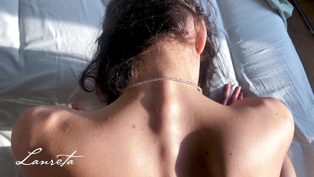 Knowing how you enjoy looking at my neck, I'd like to show you a bit more. I slowly undress through the vid, caressing myself in the sun. After pulling down my panties, I tease you by showing how I would ride your cock softly. Moans after moans I ask you to cum on my neck while I'm laying on the bed and looking up at you.