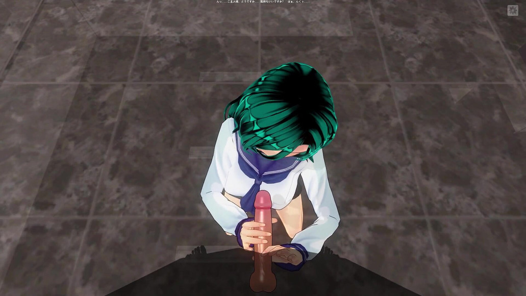 3D hentai dívka s modrými vlasy honí chlapa na záchodě