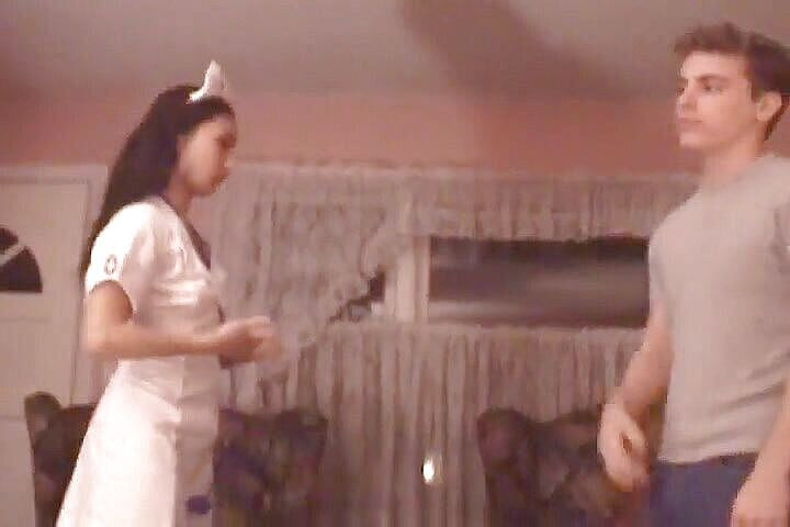 Sweet asian nurse jizzed on ass during doggystyle pose.