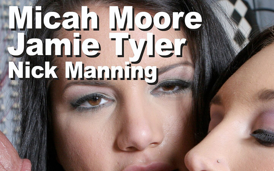 Description: Jamie is the gal with tats on her shoulders, Micah is the minx with the ring tatted on her belly and an armband on her right arm. The two sluts take turns sucking and fucking Nick, and then cleaning each other off his cock afterward. When Nick finally dumps his load, the two whores snowball the creamy results.