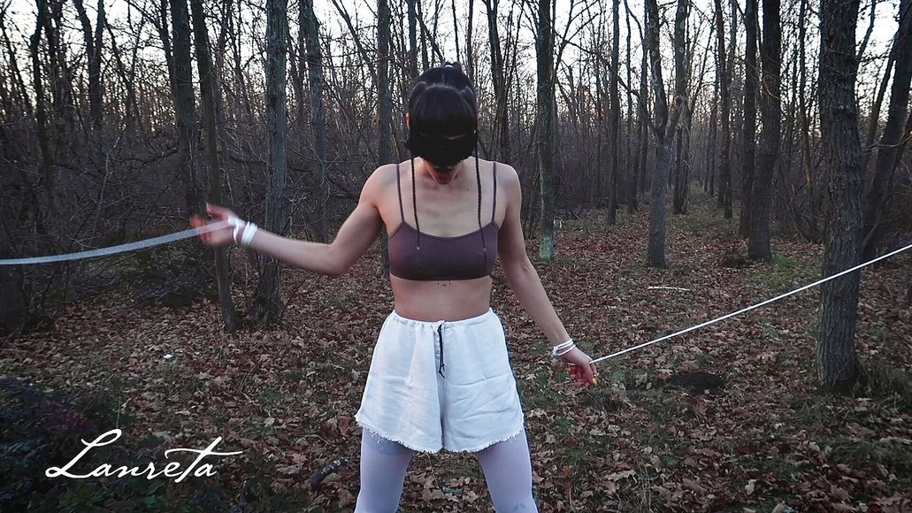 Toto je nahá svalovina show video. Jsem svázán mezi dvěma stromy provazem, snažím se utéct, snažím se využít svůj důvtip a sílu, abych vyzkoušela pouta a objevila své vlastní limity.