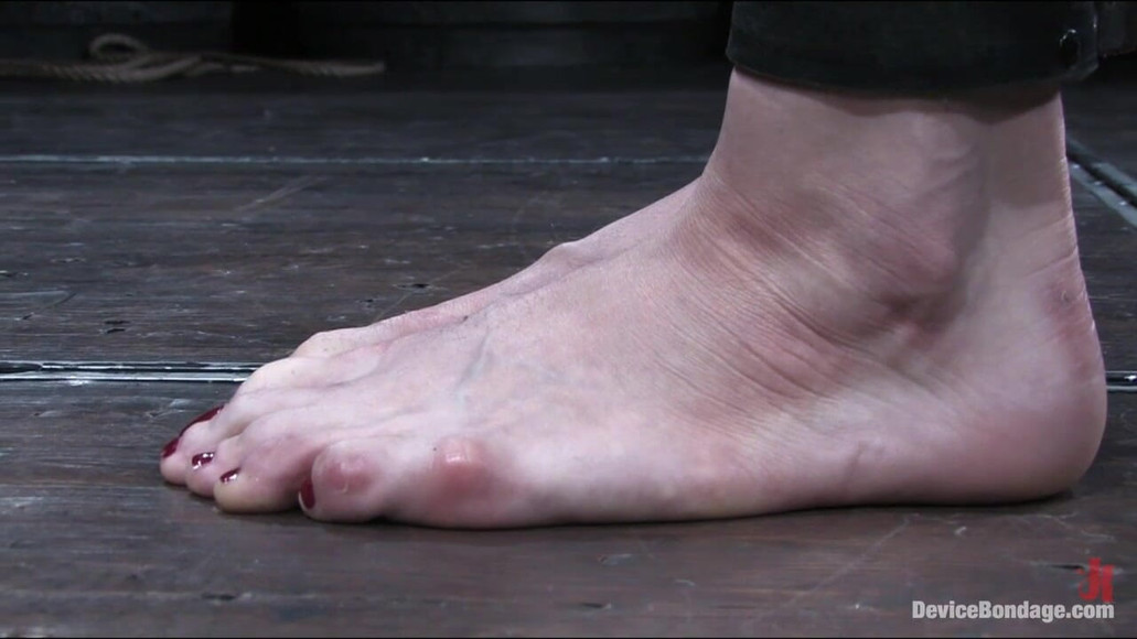 Carrie has done some exploring of BDSM in her private life. When questioned, she reveals she has also gotten her feet wet with modelling by posing nude and in light bondage for "private collectors." None of her experiences, however, has prepared her for this shoot. She begins to struggle with the bondage immediately. This isn't like the photo shoots the collectors made her do. There is no pawing and no fawning. No pantyhose rubbing or barefoot fondling. Here there is silence. There is a rigid collar buckled unbearably tight around her neck. Her face is red with the strain and sweat drips off her brow. I know the position she's in is agony. I know her feet are screaming in the bargain basement high heels that don't fit. I know it because I went to great lengths to make her suffer in precisely the way I want. I keep asking her if she wants her shoes off. I know she desperately does, but she keeps denying it.