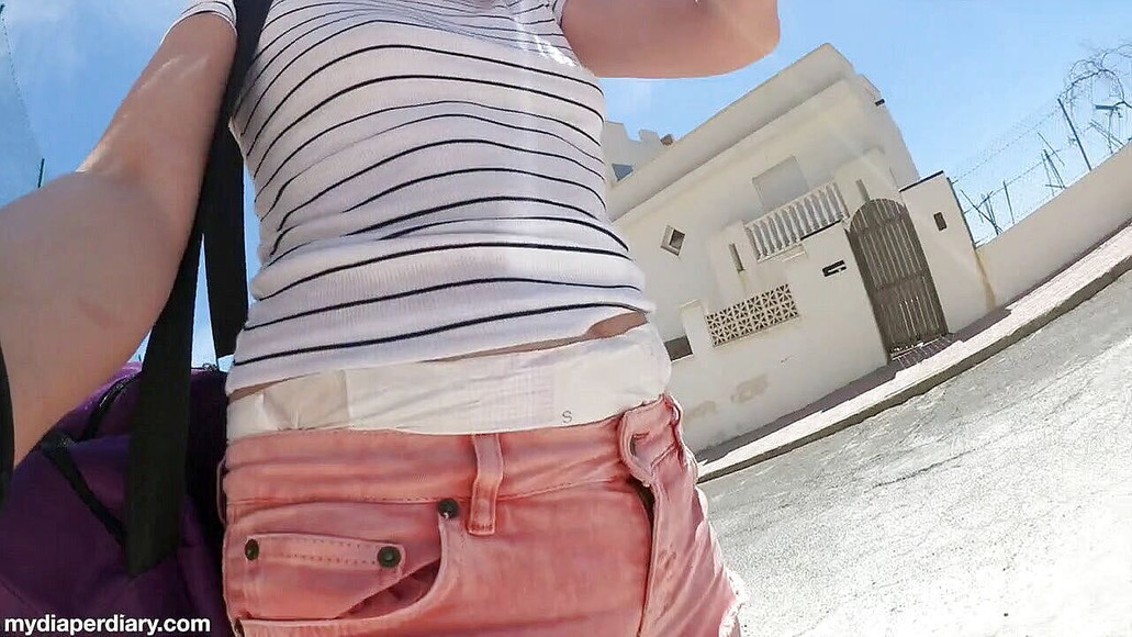 Užívám si sluníčko a na dovolené relaxační procházku! Mám na sobě svoji roztomilou malou tričku a malé šortky. Můj Tena Slip Maxi je sotva skrytě, když chodím, bez péče ve světě.