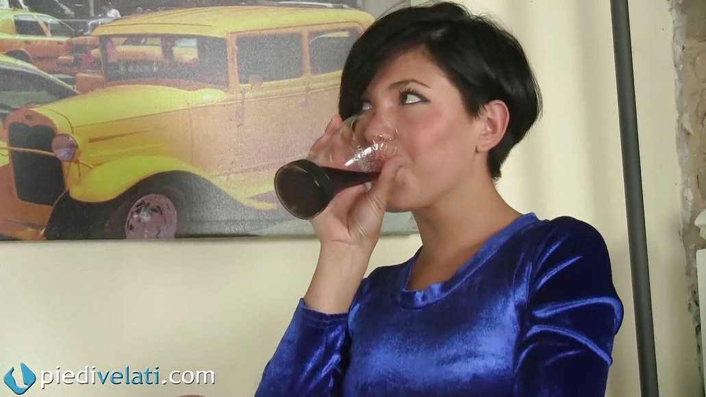 Nádherná Alessia si dává nohy na stůl ve foot fetiš videu.