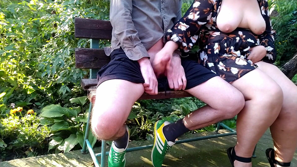Curvy mother-in-law flashed her natural tits in a park and made her son-in-law cum