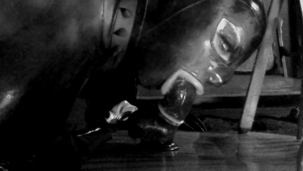 Sissy rubberdoll sucks a big black dildo.