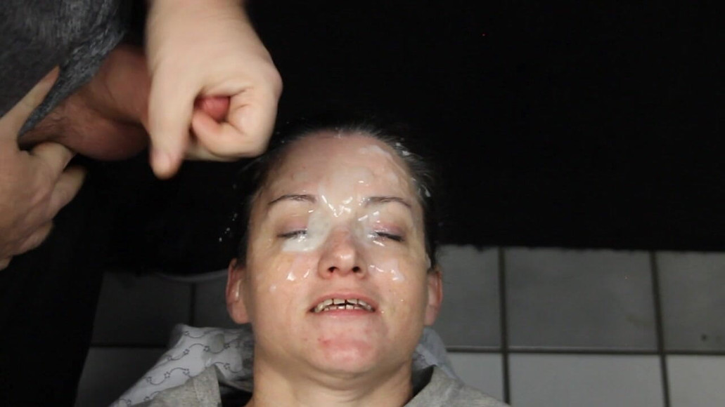 Je vzadu a její obličej je pokryt velkým množstvím ořechů