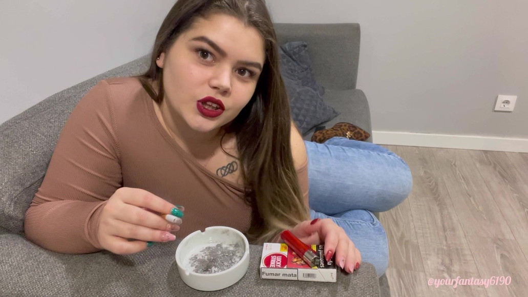 I am on the couch and I want to smoke a cigarette. I am pretty horny and I would love to see you jerking off while I smoke. I tell you how to do it while taking deep drags of smoke. I wear red lipstick. I want you to cum because I know how bad it turns you on seeing me smoking.