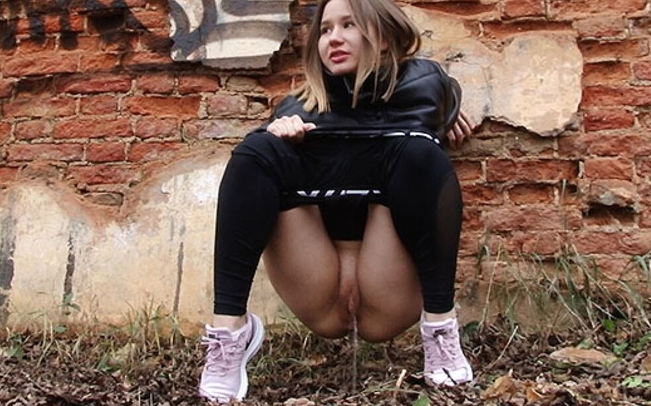 Got2Pee presents "Lean on Me" - part of the Puffy Network. Our latest update on Got2Pee features a cute European who jogs along a path looking for somewhere to relieve her piss desperation. She's right by a busy road but decides to piss against a graffiti covered brick wall. Using the wall as a brace, this babe holds onto the wall while squatting to pee!