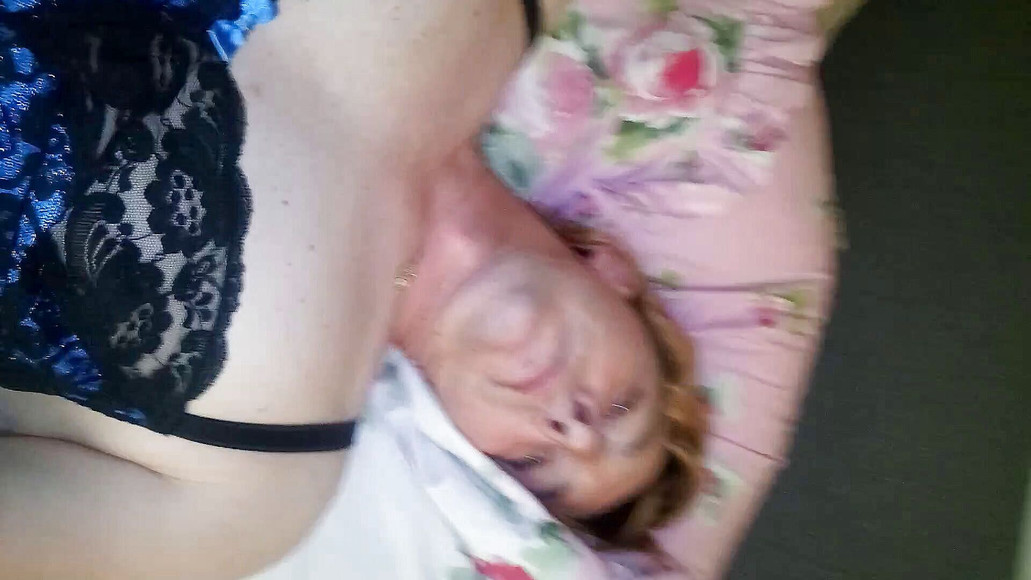 Anální kolík a sperma v mrdce v modrém prádle