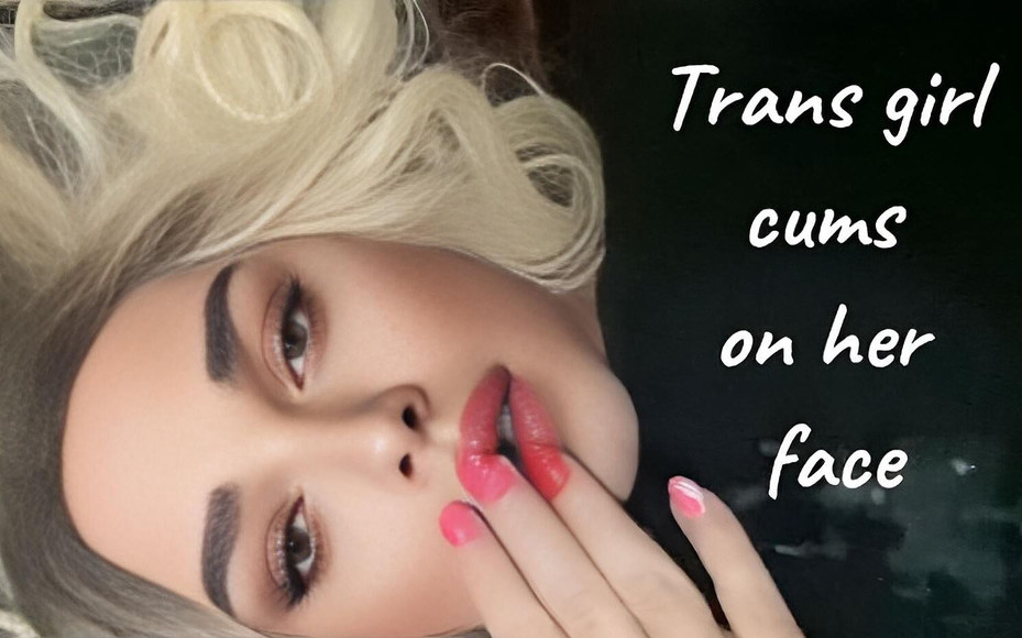 Trans girl Sasha Q cums on her face ( trans sissy trap Femboy cumshot )