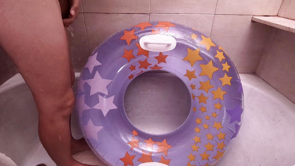 A beautiful swim ring. Whenever I take a shower, I take one of my toys with me. They wanted you to see in this video how much I enjoy having sex with my inflatable.