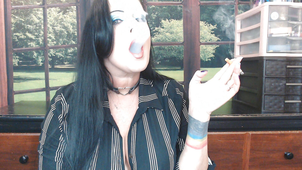 Welcome, get comfortable it's time to smoke. Your daily smoke time with your goddess, take every single drag. Inhale all my smoke. You will take every drag, we will darken your lungs. Making them darker and darker. Nice up close imamate smoke session. Learn your new routine, I own you, you will be completely devoted to me. Enjoy some small talk about brands, teaching you your mantra, repeating after me over and over.