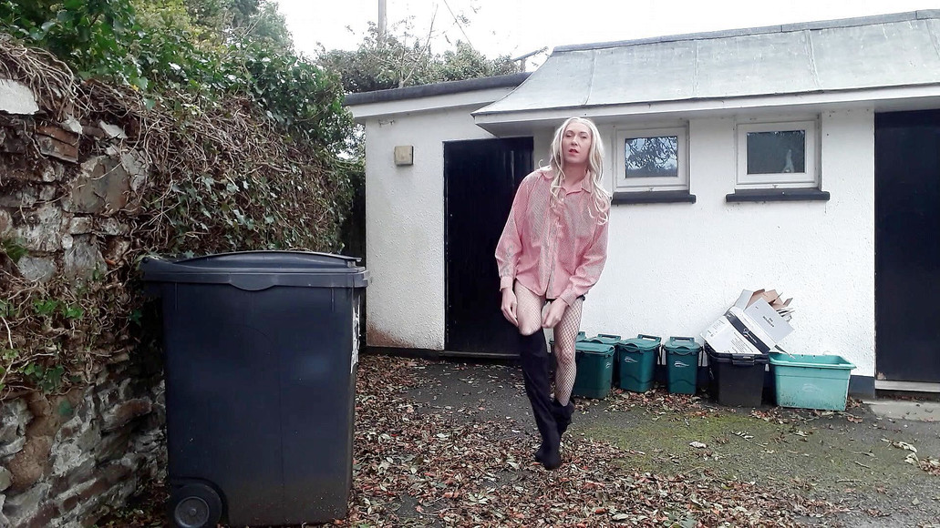 Attempt 1. Waiting my lift from college, i tuck down by the bins and start undressing, getting horny for cock, hoping to get caught and thus getting what i want xx