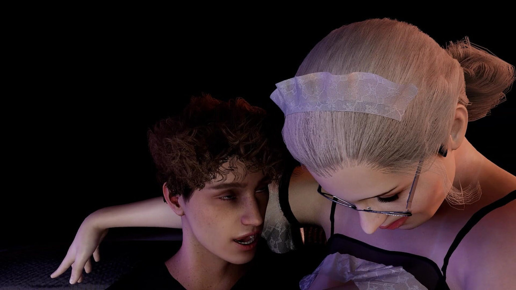 Cougar Stepmom in maid outfit sucking her master's duck. Close up blowjob. Hentai milf. Big tits, big nipples. Big ass sex maid.