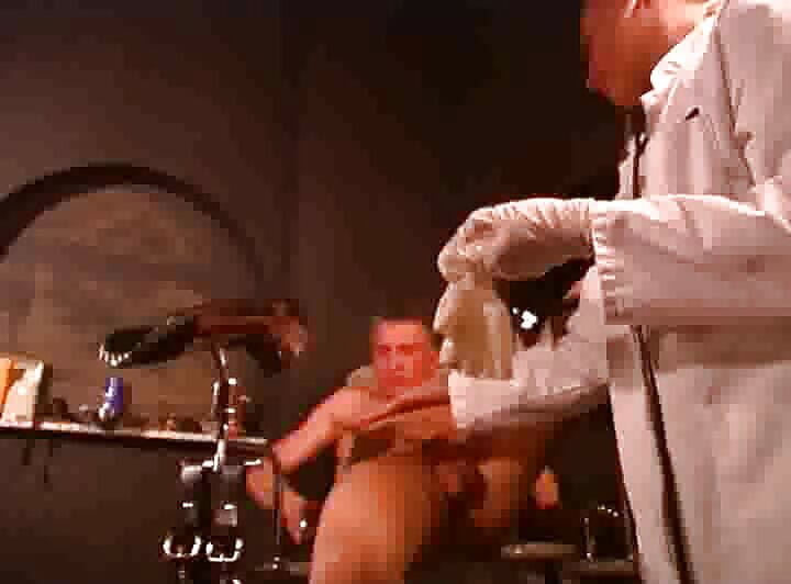 The seed sample! Rolf is milked by the doctor with the gloves after a prostate examination for the purpose of a semen sample.