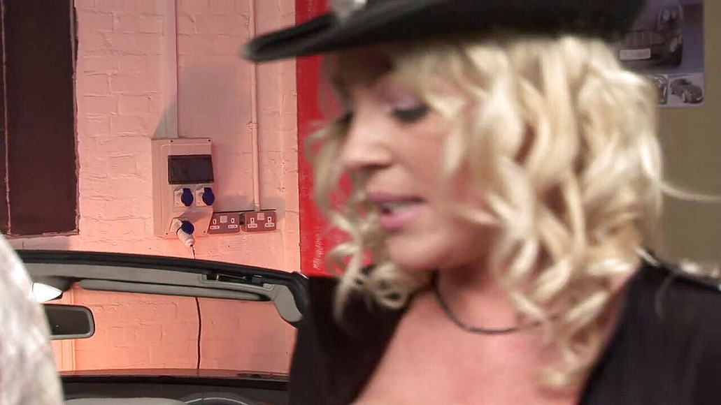 After a long night of it, the neighbor passes out in a convertible. Someone notices this and calls the cops. A beautiful and horny police officer comes over to straighten things out. She strips the guy down, right then and there, and checks for anything bad. The only thing on him that should be bad is the size of his rigid cock. She demands he slide her satin panties aside and lick her pussy before stabbing her with his giant, meaty tool. After a thorough pussy blasting the cop gobbles up the guy's dehydrated cum and sends him home. To her home...