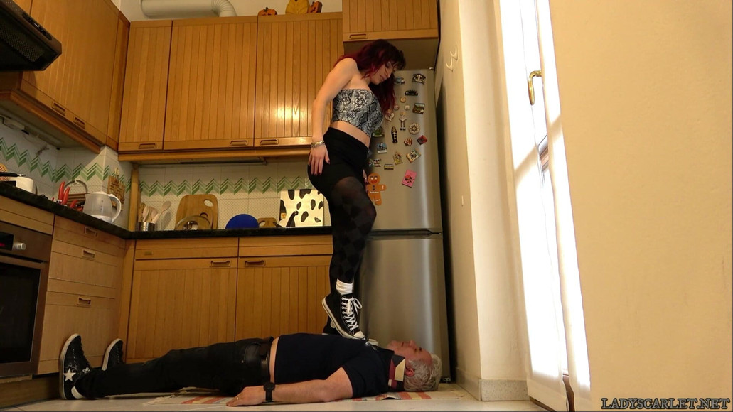 ITALIAN LANGUAGE I just got home from a walk in the park with my All Stars, I go to the kitchen, take a glass of water and call my slave to clean his shoes. This morning it rained, my soles are dirty and muddy and he will have to clean them thoroughly with his tongue, his body and his face. I get on my doormat repeatedly, on his back, abdomen and face: a long lasting facestanding, then I rub the soles well on every part of his body until the shoes are as good as new.