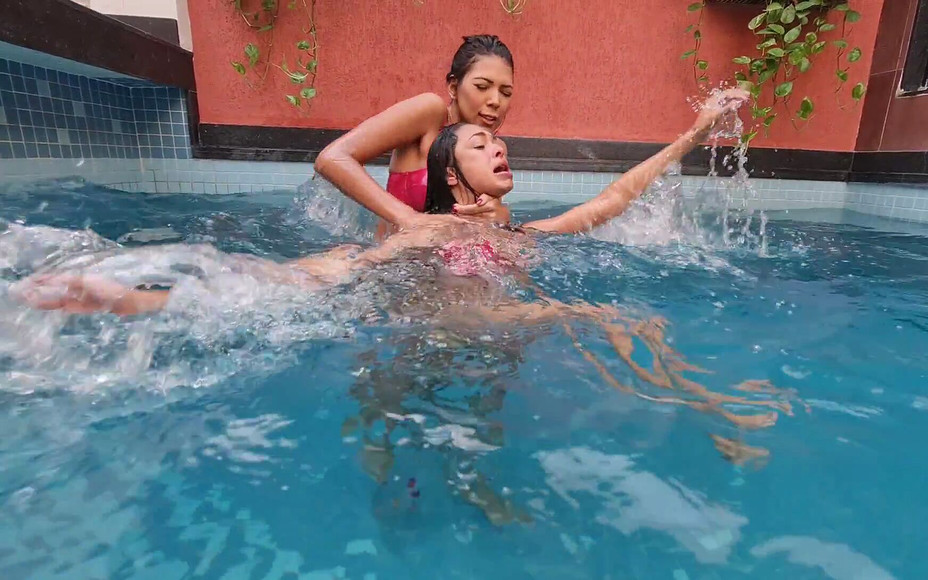life is cool by the pool, but not for jenny and not today. she try to relax in the water, when her domina shows up, and starts to punishing her. domina izabela pushes jenny's whole body under the water, and keeps her there until the girl has no more oxygen. jenny try to stike back under the water, and squeezing the domina's big, hard boobs as much as she can, but intstead of torment, izabela only enjoying more the whole situation.