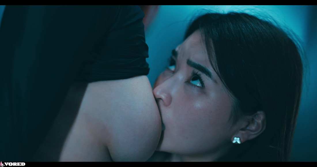 In her dimly lit bedroom, Rikako Katayama sits at her dressing table when her phone rings. As she answers, a loud bang outside catches her attention. Curious, she steps into the dark hallway and gasps upon seeing Rae Lil Black, a sinister in black. Rae grabs Rikako by the throat and flings her onto the bed. Gasping for air, Rikako watches powerlessly as Rae crawls toward her and exposes a lubricated breast, Rikako’s face with it. Dazed, Rikako begins to suck on Rae’s nipple, milk trickling down her cheek. Pulling away, Rae smirks, caressing Rikako’s cheek and kissing her. As they grow more intimate, Rae fondles Rikako’s breasts, burying her face in them. They come together, each other in the lubricated fluid. With a sudden move, Rae licks Rikako’s pussy, overwhelming her with pleasure. As they grind against each other, they climax, fluids soaking the bedsheets. Rikako, seemingly , crawls to Rae and begins licking her, triggering a flood of breast