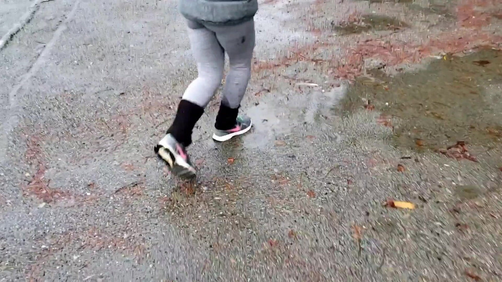 Procházka po jezeře s botami a ponožkami. Je mi z toho velká zima! Zahřívám se u auta s horkým chcaní v kalhotkách a stékám nohama na mokré ponožky. Zlaté čůrání je teplé jako slunce. :D