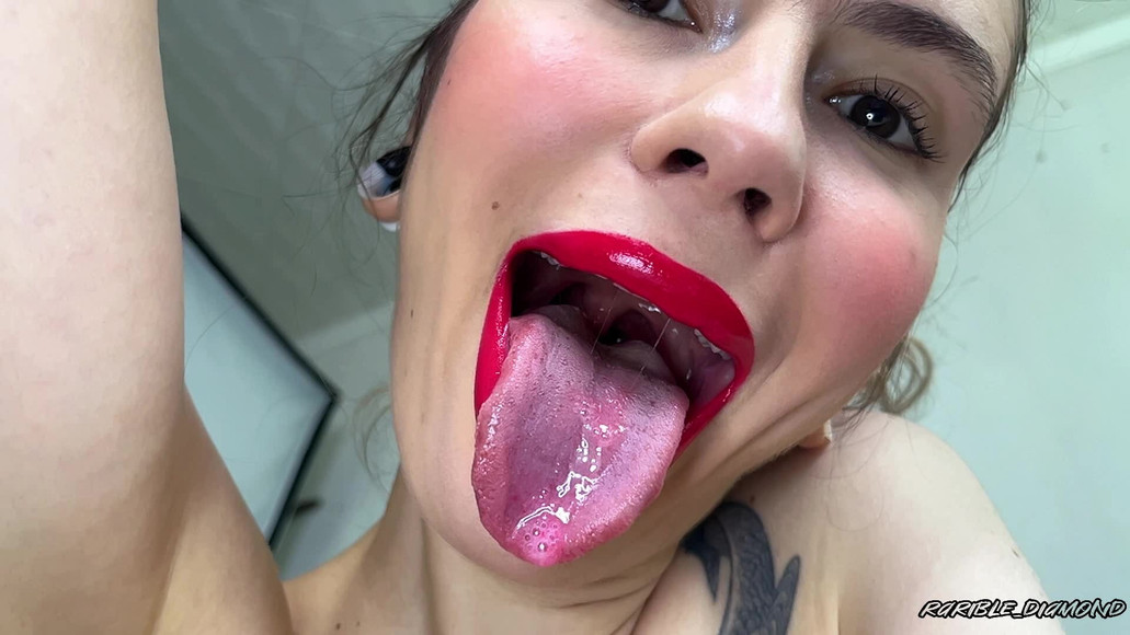 CUSTOM: Red lipstick and playing with spits, spitting into the camera and have the camera slightly down, so that you look a bit (only a little bit) from above