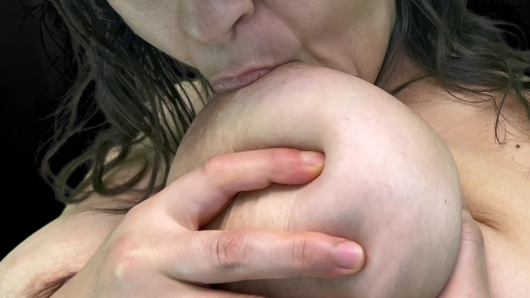 Watch me suck my tits in my bunny mask I love to suck my huge juicy nipples hard