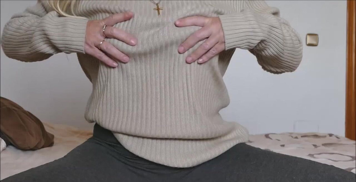 Hraní kolem mé ložnice, mám zadek ohnutý na posteli s mými kalhoty na jógu a kalhotky kolem kolena.
