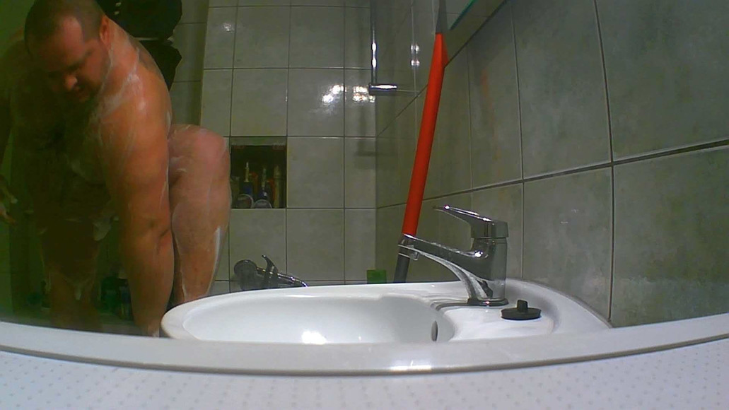 I wash my cock's ass and my big belly before work