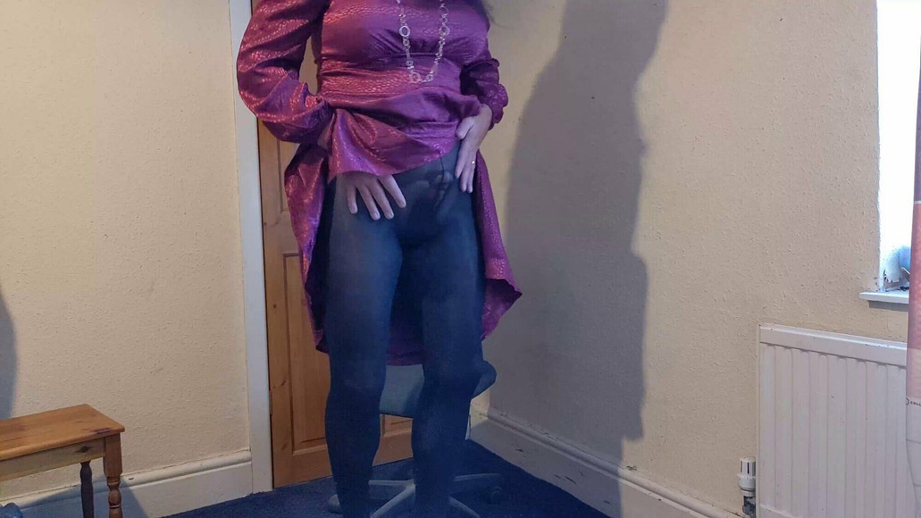 Sarah gets all hot and sticky rubbing in tights