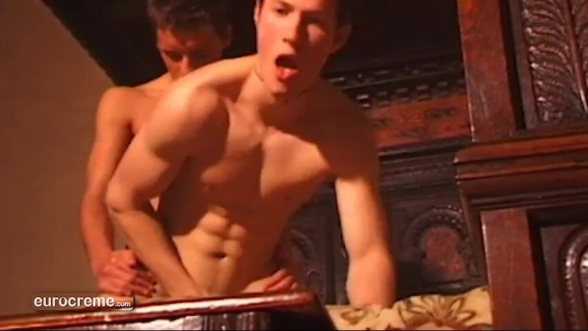 After dinner, Ryan leads Morgan by the hand into his bedroom, a spacious room filled with lit candles for a lengthy, passionate gay fuck.