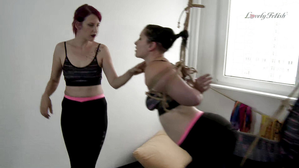 Full shibari action incoming. Wanna see us fly? We are two mistresses who rig together. Professionally. Let us seduce you to the wonderful world of intense and erotic bondage. I sports costume, all is super flexible and tight while going up in the air. Afsana is such a wonderful bunny and Rija takes so much care for her. Both are passionate and tender together. Is this exhausting? And for whom might it be more stressful? Afsane receives some good smacks of the rope, when she is hanging there. This is a full BDSM show! Including lesbian kissing and cafessing. Models: Linked: Rija Mae, Afsana Duration: 35:57min