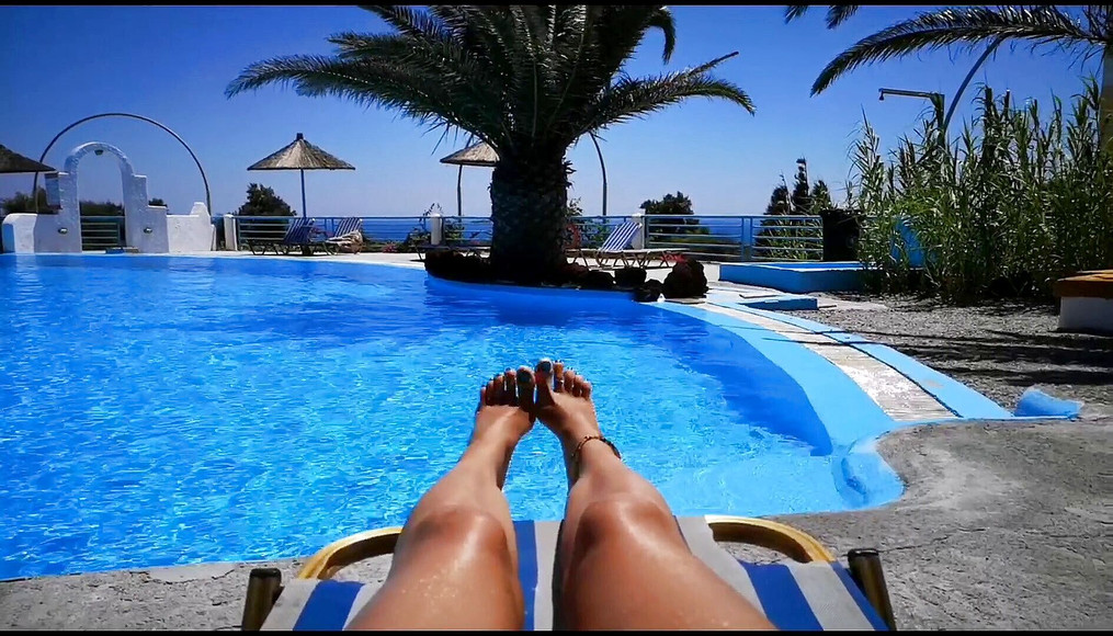Hi there my little one and welcome to my world. It's okay, you can relax now and allow yourself to disconnect from all the problems and worries in your daily life. With me, you can let go of all control and simply allow your mind to relax, while your muscles throughout all of your body are slowly becoming less tense as well. All you need to do in this video is to relax and listen to my voice. As long as you follow my instructions, always do as I say, you will be protected and there is absolutely nothing you need to fear. I know you need to detensify after working so much lately, so I'm gonna need you to find a really comfortable spot in the house where you feel safe, get into a comfy position and put your headphones on. This will be one of the shortest, yet most intense mesmerization sessions that you've experienced so far, and it will be all about feet. Are you ready to fall into trance while watching me tease with my feet by the pool?