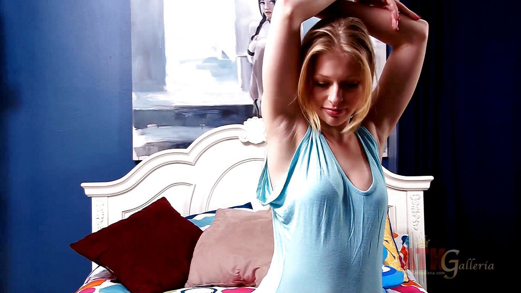 Avril Hall on the bed for a camshow. Answering questions, getting naked and masturbating with her favorite toy.