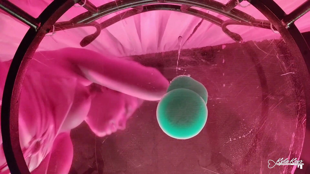 One big green suction dildo plus one clear bottom chair equals plenty of orgasms.
