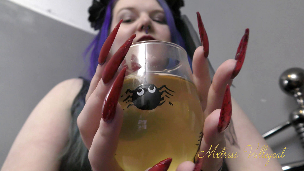 I have something for you, since you've been so good, since you've followed all of my instructions and done everything I have asked, I thought you might like a treat. A nice long, sip of this fresh, apple juice, made from only the finest of magical apples! While you're at it, I'm sure you will admire my long, red, glittering nails as you prepare to drink deep.