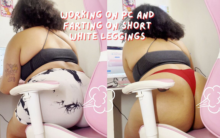 Jen pravidelný plynový den, kdy nemůžu přestat prdovat, zatímco pracuji na svém počítači. Video ve stylu pračky, jako byste tam byli, sledovali mě nenuceně pracovat a prdím svým velkým zadkem pomocí krátkých bílých těsných legín na mé růžové a roztomilé hráč židli.