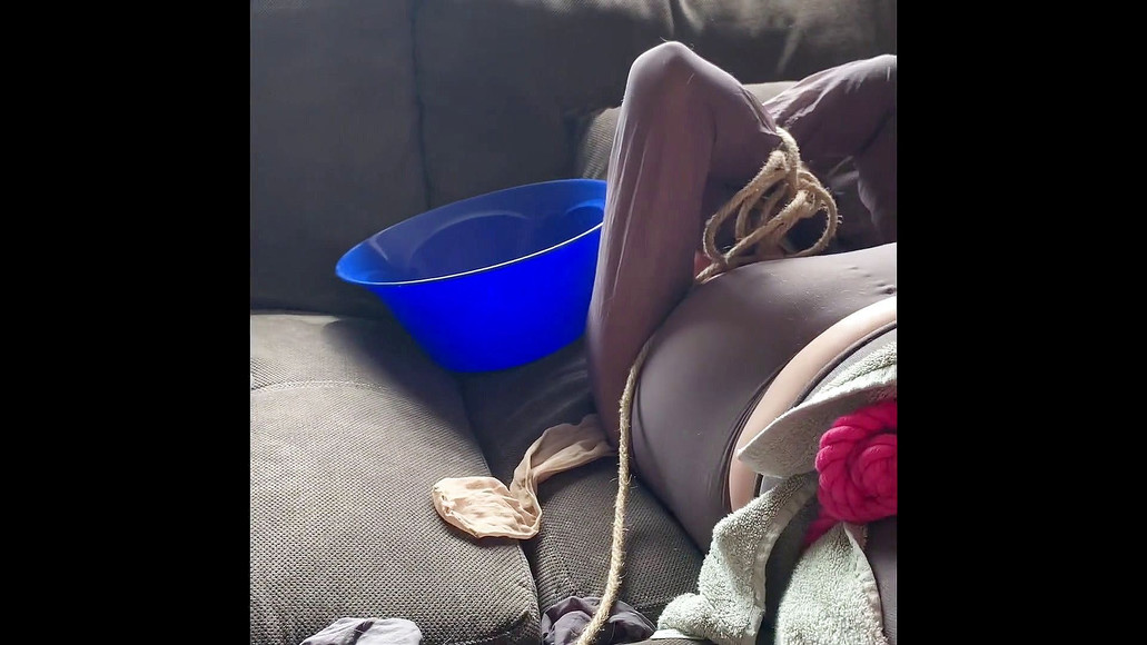 Mickey is covered in Pantyhose tied to a dolly and punished endlessly with orgasm after orgasm, a spray bottle, tickle fetish, a vibrator and endless pleasure.