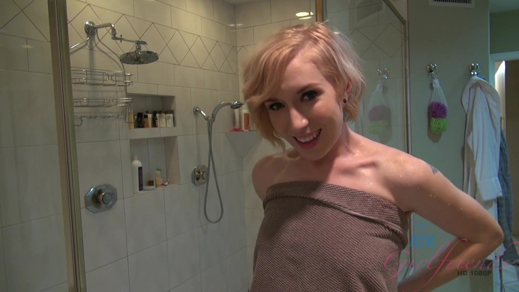 In part 2 of your date with Maia Davis, this hot blonde is in your tub, taking a hot bubble bath while you watch. You admire her slender frame, and her several well done tattoos. Maia rinses the bubbles off in the shower, which gives you a chance to really see how stunning she is head to toe. After she dries off, Maia sits down, spreads her legs and teases you as she plays with her pussy. The anticipation builds as she fingers her now very wet pussy.