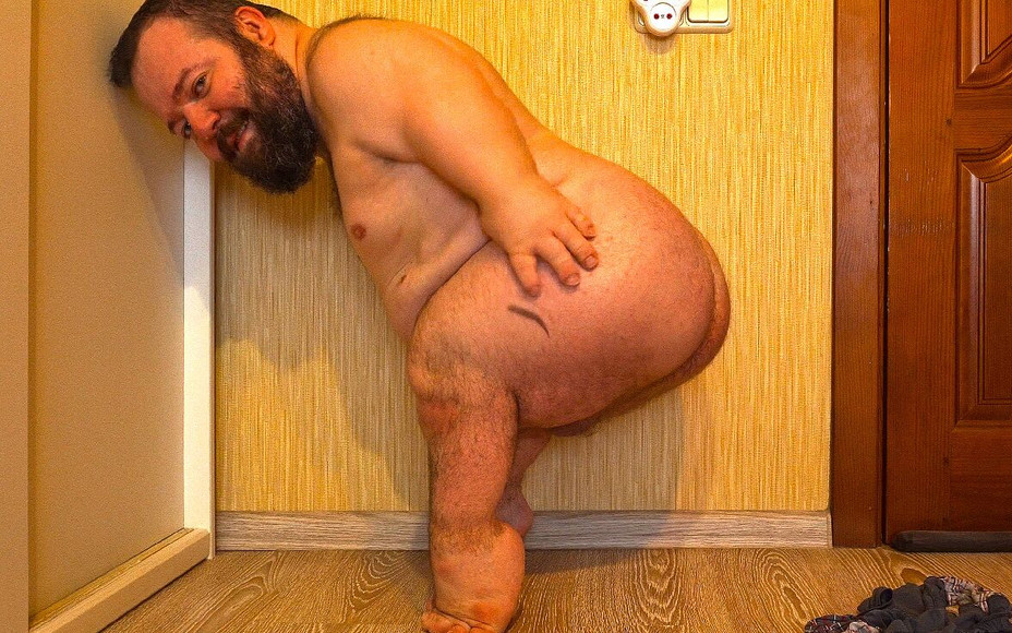 Trpaslík ukazuje svůj tlustý zadek v kalhotkách a bez!