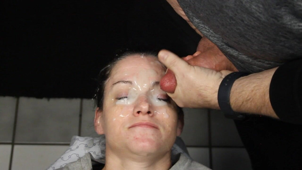 Sie ist zurück und ihr gesicht ist mit großen ladungen nuss bedeckt