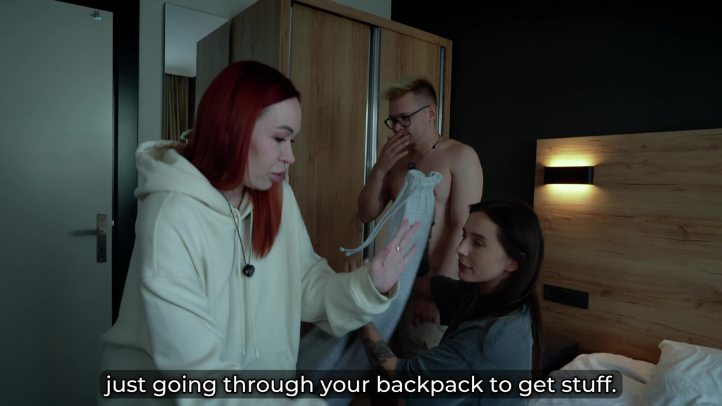 Tauchen Sie in eine skandalöse hotelzimmer-escapade ein, die zu heiß ist! Eine sinnliche rothaarige stiefmutter, ihre stieftochter mit wunderschönen natürlichen titten und einem sexy tattoo und ein lustvoller stiefsohn checken in ein hotel, nur um zu entdecken, dass sie sich ein Bett teilen. Funken fliegen, als das stiefgeschwister schema für einen dampfenden sex, aber die Anwesenheit ihrer stiefmutter sorgt für eine spannende Wendung. Während die Nacht sich aufheizt, entzücken sich leidenschaftliche küsse und neckende Berührungen, wobei der stiefsohn eifrig die Kurven seiner stiefschweder erforscht. Die Dinge bieten eine freche Wendung ab, als die stiefmutter sie erwischt und subbewusst plätze unter den hüllen tauscht. In einer knisternden Mischung gönnt sich der stiefsohn unwissend den verbotenen freuden seiner stiefmutter, was zu einer wilden Löffelsession und einem explosiven gesichtsbesamung führt, das alle sprachlos zurücklässt.
