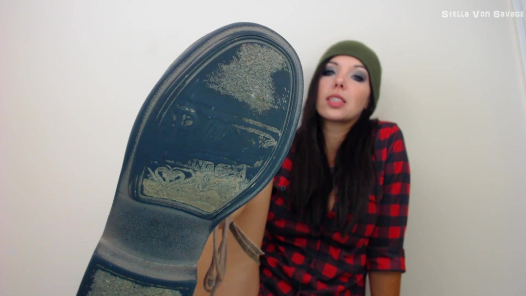 Alright, boot cleaner, get to licking! I've been tromping around through the mud in the woods, getting every nook & cranny of these boots filled with goey dirt. I don't want any of this on my carpet - and thats exactly what you're here for. Use those tastebuds and scrub!