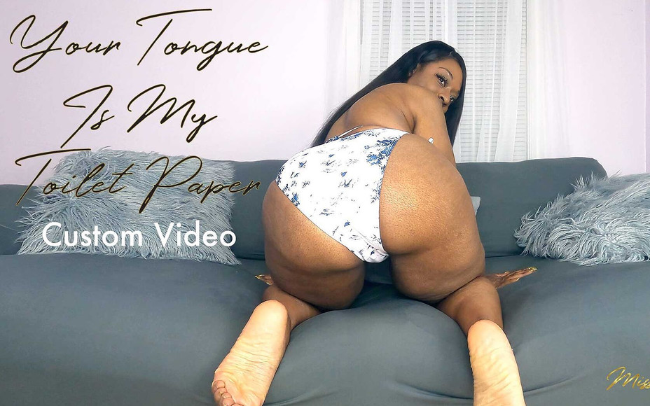 You're here because you have a serious fetish for ebony's ass. Lucky for you, I have time to teach you how to show your appreciation for big black asses. I'm also gonna teach you how to be my new toilet slave. When I call you, I'll say "lips, nose, or tongue", depending on what type of service I need from you. You'll be on call 24/7 to kiss my ass, sniff my farts or clean my asshole with your tongue.