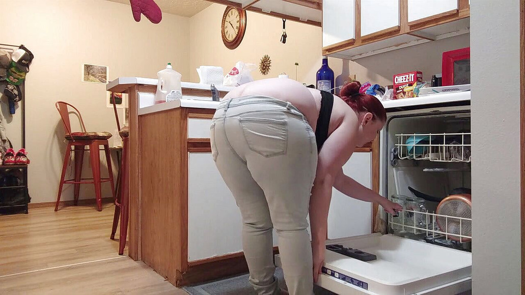 "Buttcrack Reveal Unloading Dishwasher" - I'm so glad you stopped by love! You got here a little sooner than planned. I'm trying to finish some housework and finish getting dressed. If you don't mind waiting, l'll finish this up really quick. Oh... these pant's never stay up! Sorry to flash my ass. I don't mean too...