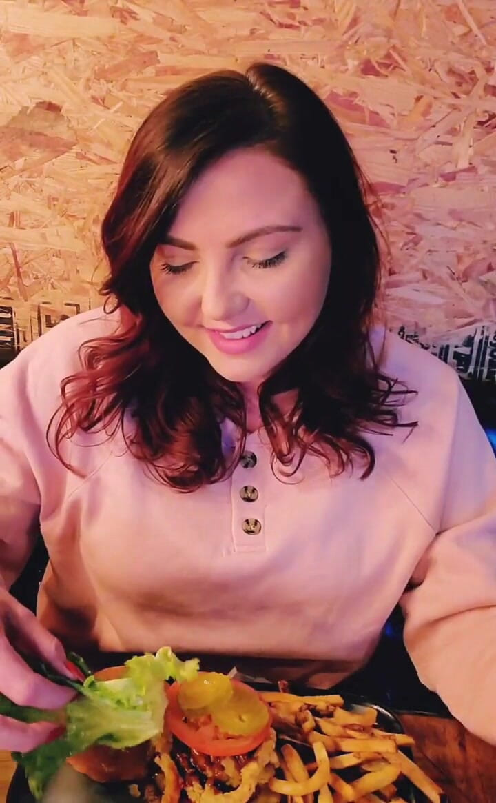 Aku punya ide untuk video, tapi setelah masuk ke restoran aku agak kehilangan sarafku, jadi inilah aku makan burger ukurannya