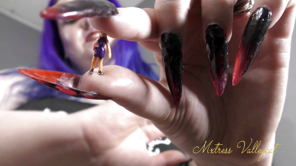 Look at you in your tiny little skirt, what a slut! Well I'm the biggest slut in town and I'm going to crush my competitors! But how to do it? Should I just smoosh you between my fingers? Rip you limb from limb? Drop you from a great height? Or perhaps something else...